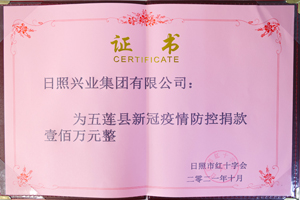 2021年10月,興業(yè)集團為"五蓮縣新冠疫情防控捐款壹佰萬元"