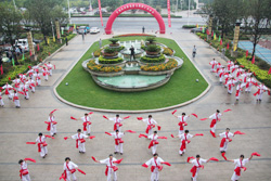 2013年9月28日,第九屆職工運(yùn)動(dòng)會(huì)在興業(yè)財(cái)富廣場(chǎng)舉行,圖為社區(qū)中老年文體活動(dòng)俱樂(lè)部精彩的開(kāi)幕式表演。 |