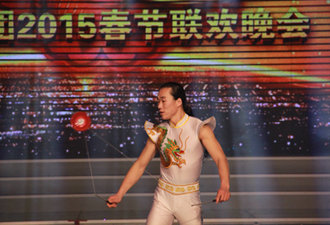 《星光大道》年度六強、被譽為“舞臺開心果”的陸海濤登場獻唱自己的新歌《好媳婦》,原汁原味的東北風(fēng)味唱腔幽默風(fēng)趣,引爆現(xiàn)場氣氛,他還親切地與觀眾互動,快速切換模仿模式,分別用楊坤、趙本山、劉歡、騰格爾、殷秀梅的聲腔表演歌曲《無所謂》,惟妙惟肖,博得現(xiàn)場一陣陣掌聲;集團春晚常青樹——興業(yè)社區(qū)文體活動俱樂部的中老年朋友們精心編排了舞蹈《幸福如意》,舞出了6萬業(yè)主“住在興業(yè),一起幸!钡男穆;大型人屏互動節(jié)目《我是興業(yè)小蘋果》,將臺上、臺下融為一體,整個演播大廳變?yōu)闅g樂舞動的海洋;歌伴舞《愿得一人心》浪漫纏綿,表達了祝福天下有情人終成眷屬的美好心愿;2008年曾作為特邀演員參演興業(yè)春晚的雜技演員周天,再次登臺帶來全新雜技表演《抖空竹》,他技藝超群,令人目不暇接,引得現(xiàn)場觀眾一陣陣驚呼贊嘆。