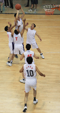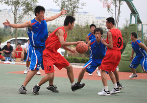 在比賽過(guò)程中各支代表隊(duì)都發(fā)揮出了極高的水平,為觀眾奉獻(xiàn)了一場(chǎng)場(chǎng)精彩的比賽。尤其在9月20日上午的交叉賽中,興業(yè)汽配代表隊(duì)與天泰鋼結(jié)構(gòu)代表隊(duì)勢(shì)均力敵,比賽中雙方比分交替上升,離結(jié)束還有不到20秒時(shí),汽配代表隊(duì)61:58領(lǐng)先3分并持有球權(quán),此時(shí)汽配隊(duì)員的心理感覺(jué)穩(wěn)操勝券,一個(gè)不經(jīng)意的走步把球權(quán)送給對(duì)手,離結(jié)束不到2秒,鋼構(gòu)中鋒馬沖順勢(shì)強(qiáng)攻,一記精準(zhǔn)的3分遠(yuǎn)投, 將比分追成61平,使比賽拖進(jìn)加時(shí)。在加時(shí)賽中,汽配中鋒崔冰連續(xù)中投得手,興業(yè)汽配代表隊(duì)最終以73:65的比分完勝鋼構(gòu),躋身本屆籃球比賽的冠、亞軍決賽。因?yàn)樘鞖庠颍?月20日下午的半決賽、決賽和驥翼組籃球表演賽改在日照一中室內(nèi)籃球場(chǎng)舉行。半決賽、決賽異常激烈,特別是在興發(fā)和汽配之間進(jìn)行的決賽,展示了興業(yè)集團(tuán)籃球的實(shí)力和水平,興發(fā)隊(duì)員們一次次嫻熟的配合,一個(gè)個(gè)精彩的扣籃,不時(shí)獲得現(xiàn)場(chǎng)觀眾的陣陣喝彩和掌聲。集團(tuán)驥翼隊(duì)與興發(fā)驥翼隊(duì)的籃球表演賽同樣上演了群雄大戰(zhàn),集團(tuán)驥翼隊(duì)在王建國(guó)總經(jīng)理帶領(lǐng)下,抗拒了體力不足,堅(jiān)持打滿全場(chǎng),最終以44:44的比分和興發(fā)驥翼隊(duì)握手言和(因?qū)俦硌葙惒辉偌訒r(shí)),也宣告興業(yè)集團(tuán)第五屆職工運(yùn)動(dòng)會(huì)籃球比賽鳴金收兵。